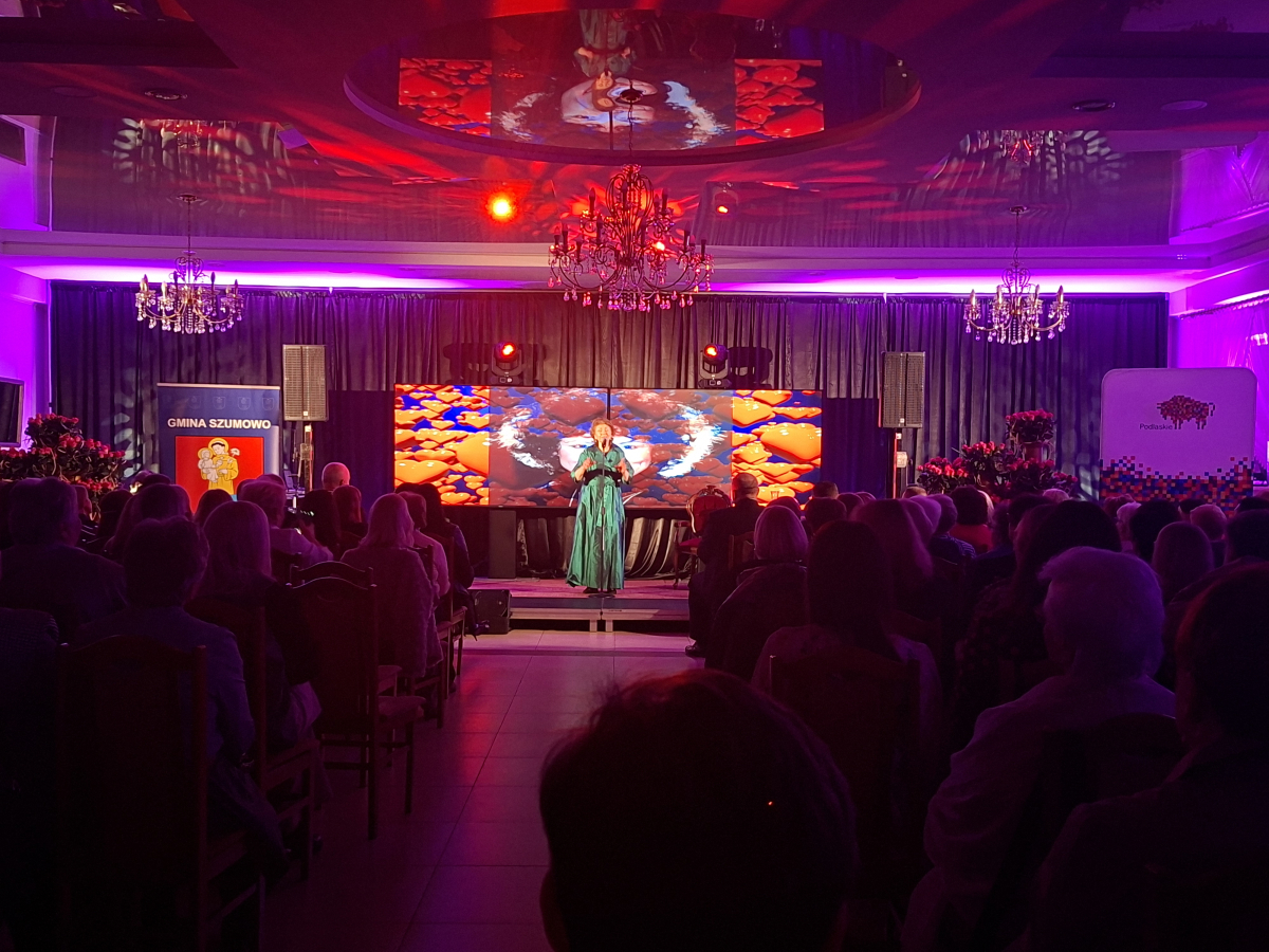 Pan Wójt serdecznie podziękował za występ Panom i zaprosił na koncert wspaniałej artystki polskiej sceny - Pani Haliny Frąckowiak. Halina Frąckowiak od najmłodszych lat zachwyca prezencją i głosem. Muzyczną karierę rozpoczęła w 1963 roku będąc zaledwie 16-letnią dziewczyną. Od ponad 6 dekad występuję na polskiej scenie w każdym zakątku naszego kraju i poza nim. Gwiazda wieczoru zaprezentowała szereg utworów bliskich jej sercu i jej twórczości takich jak: „Papierowy księżyc”, „Dancing Queen”,”Tin Pan Alley”. Nie wątpliwą atrakcją koncertu był moment w którym to artystka zapraszała do wspólnego śpiewania chętnych i odważnych widzów na scenę. Możliwość zaśpiewania z tak ważną postacią polskiej sceny, zapewnie zostanie na długie lata w ich pamięci.
