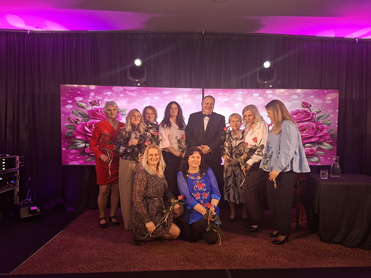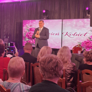 W dniu 07 marca w sali Magnolia w Wyszomierzu Wielkim, odbyła się gminna uroczystość z okazji „Dnia Kobiet”. Koncert rozpoczęła Pani Dyrektor CBK Szumowo- Urszula Jaworowska, nawiązując i podkreślając rolę i znaczenie kobiet w życiu codziennym. Na zaproszenie Wójta Gminy Szumowo Pana Andrzeja Pskieta przybyło 360 Pań oraz liczni goście. Swoją obecnością zaszczycili : Pan Stefan Krajewski- Minister Rolnictwa RP, Pan Marek Adam Komorowski- Senator RP, Pani Edyta Marchelska-Groszfeld -Startosta Powiatu Zambrowskiego, Pan Norbert Murawski- Przewodniczący Powiatu Zambrowskiego, Pan Maciej Robert Rosiak – Wicestarosta Powiatu Zambrowskiego, Pani Hanna Szabłowska- Radna Powiatu Zambrowskiego, Pani Magdalena Michalska – zastępca wójta Gminy Szumowo, Pani Katarzyna Głębocka – Skarbnik Gminy Szumowo, Pan Karol Kossakowski- kierownik PCPRu w Zambrowie, Pani Beata Ponichtera- Wójt Gminy Andrzejewo oraz kierownicy i pracownicy jednostek podległych Gminie Szumowo, pracownicy zakładów pracy, seniorki COM z Pęchratki Polskiej, Panie Radne i sołtyski, mieszkanki gminy Szumowo. Pan Wójt powitał gości, skierował wiele ciepłych słów i złożył najserdeczniejsze życzenia ku wszystkim Paniom. Życzenia złożył również Pan Stefan Krajewski oraz Marek Adam Komorowski. Na początek wieczoru czekała na zgromadzonych gości niespodzianka, którą przygotował Wicestarosta Powiatu Zambrowskiego pan Robert Rosiak wraz z kierownikiem PCPR-u w Zambrowie Panem Karolem Kossakowskim. Panowie tenorowym głosem pięknie zaśpiewali dla publiczności słynną piosenkę Pana Zbigniewa Wodeckiego pt.